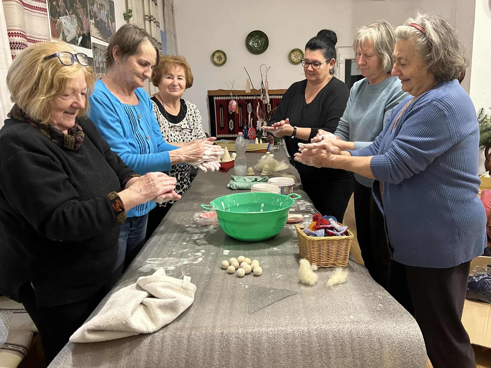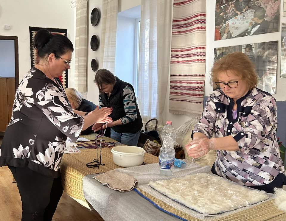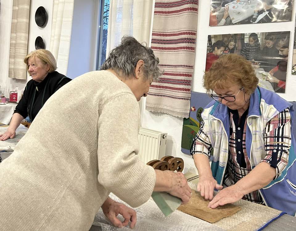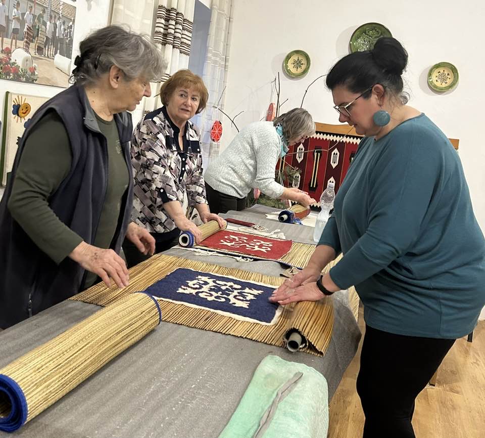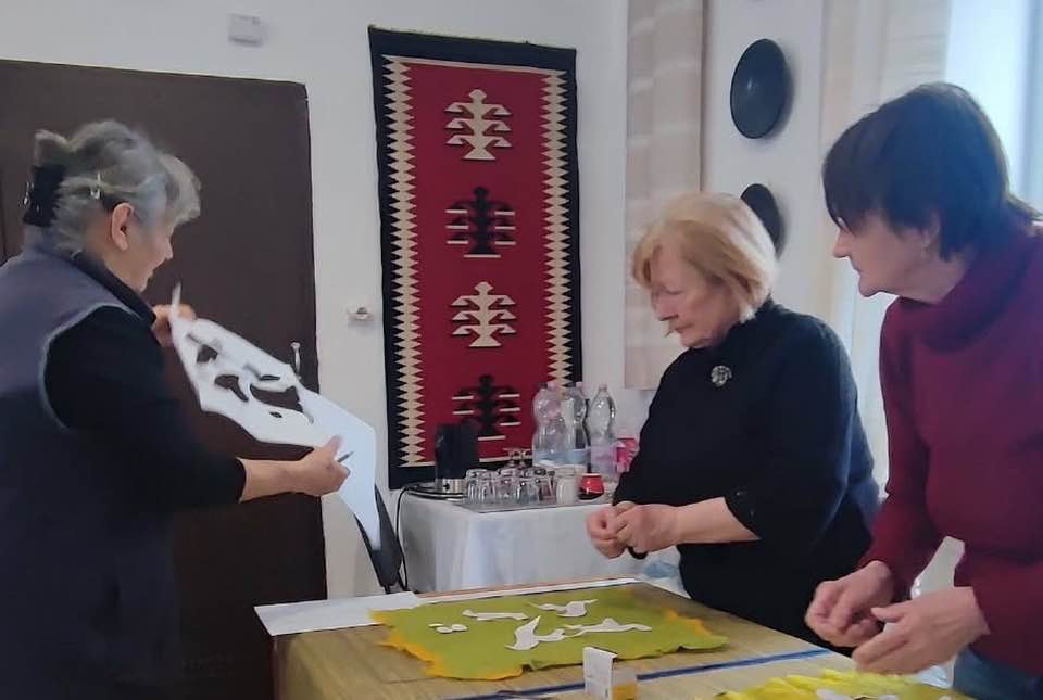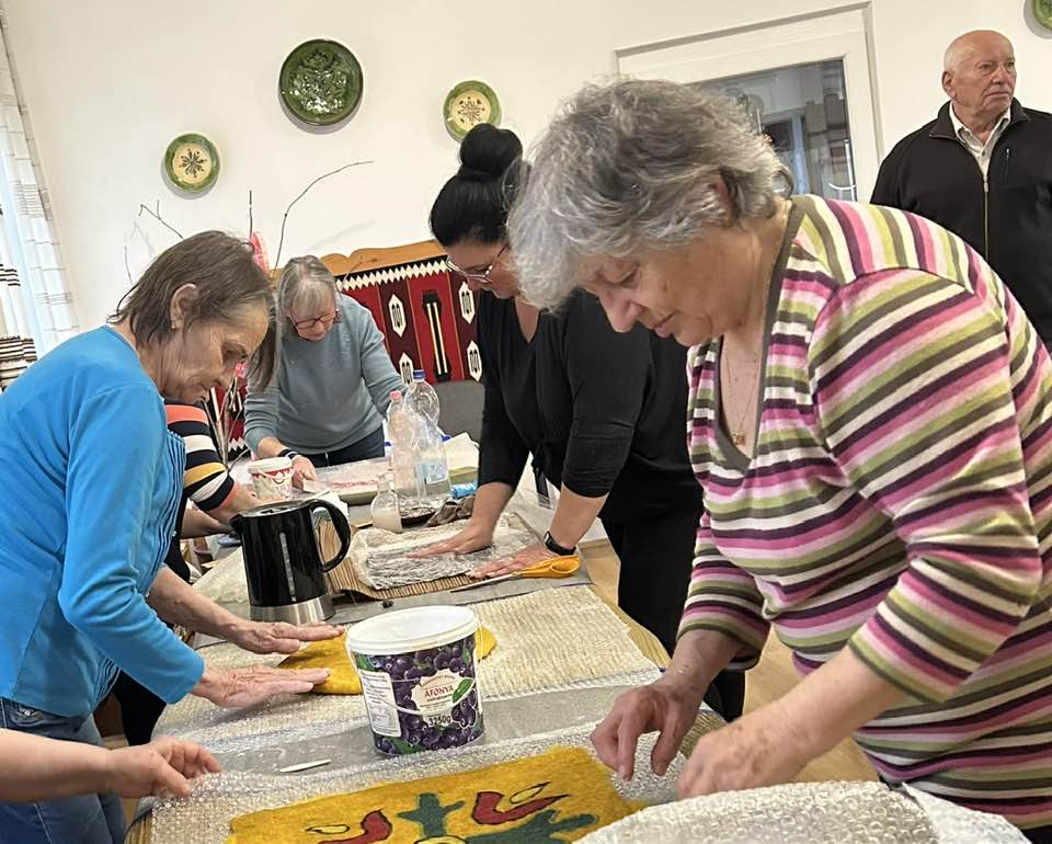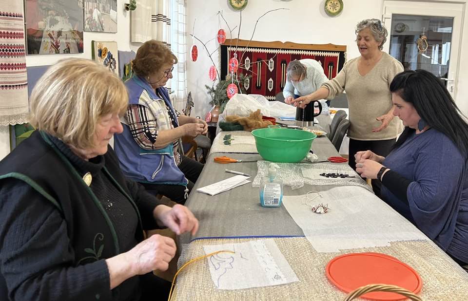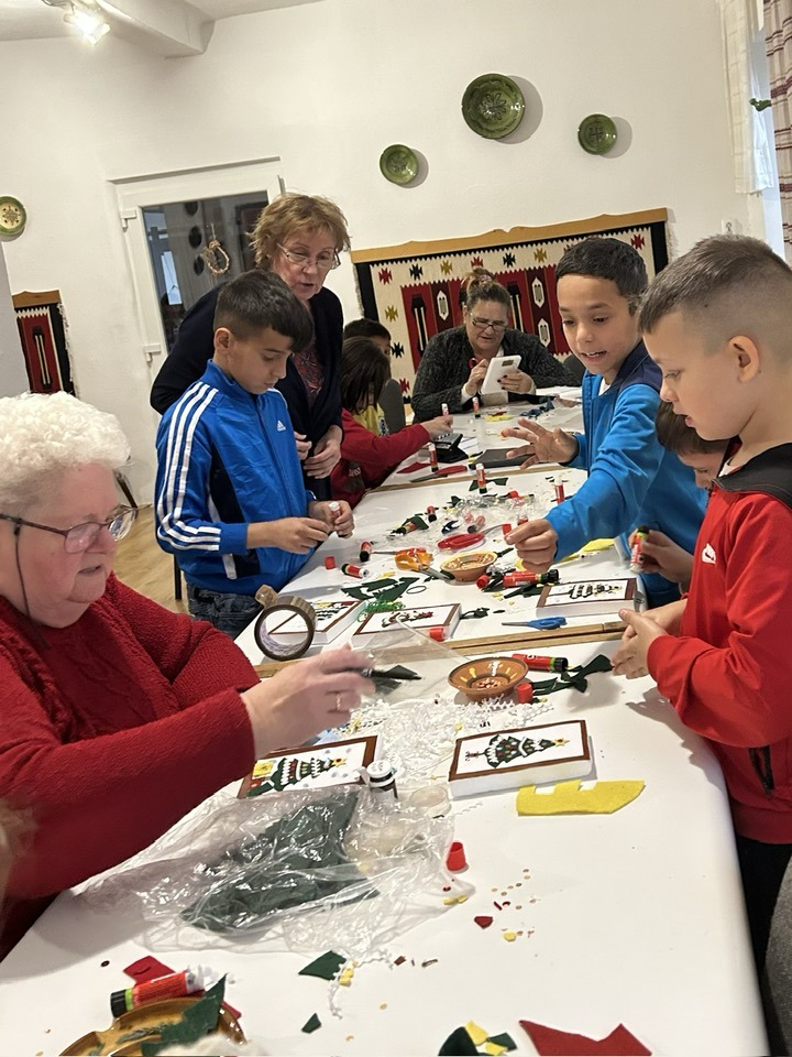 gyermekkel találkoztak, viszont a nyugdíjas klub tagjai jókedvvel készítettek filc és gyékény ajándéktárgyakat.