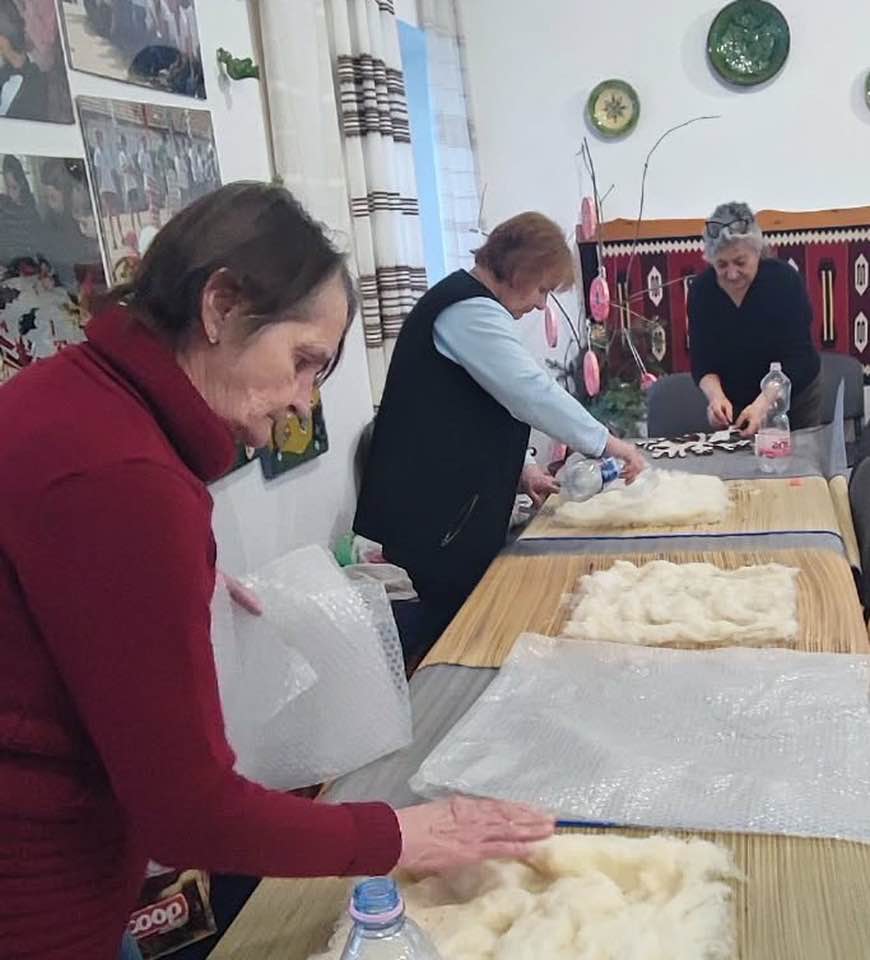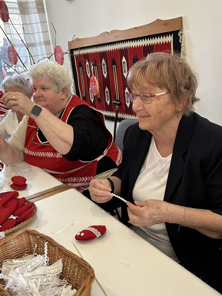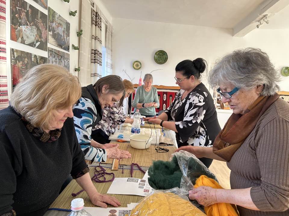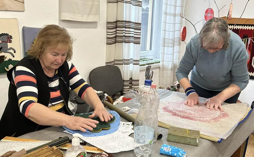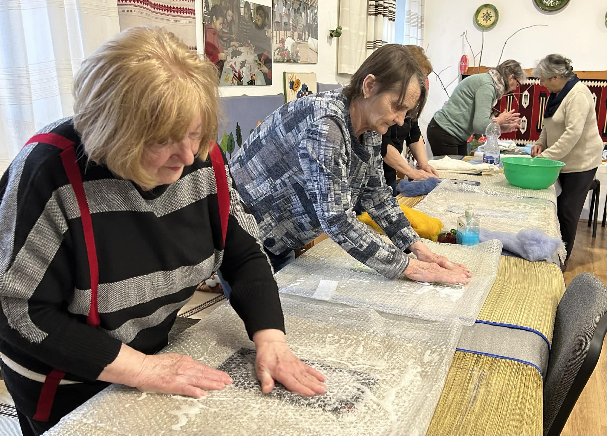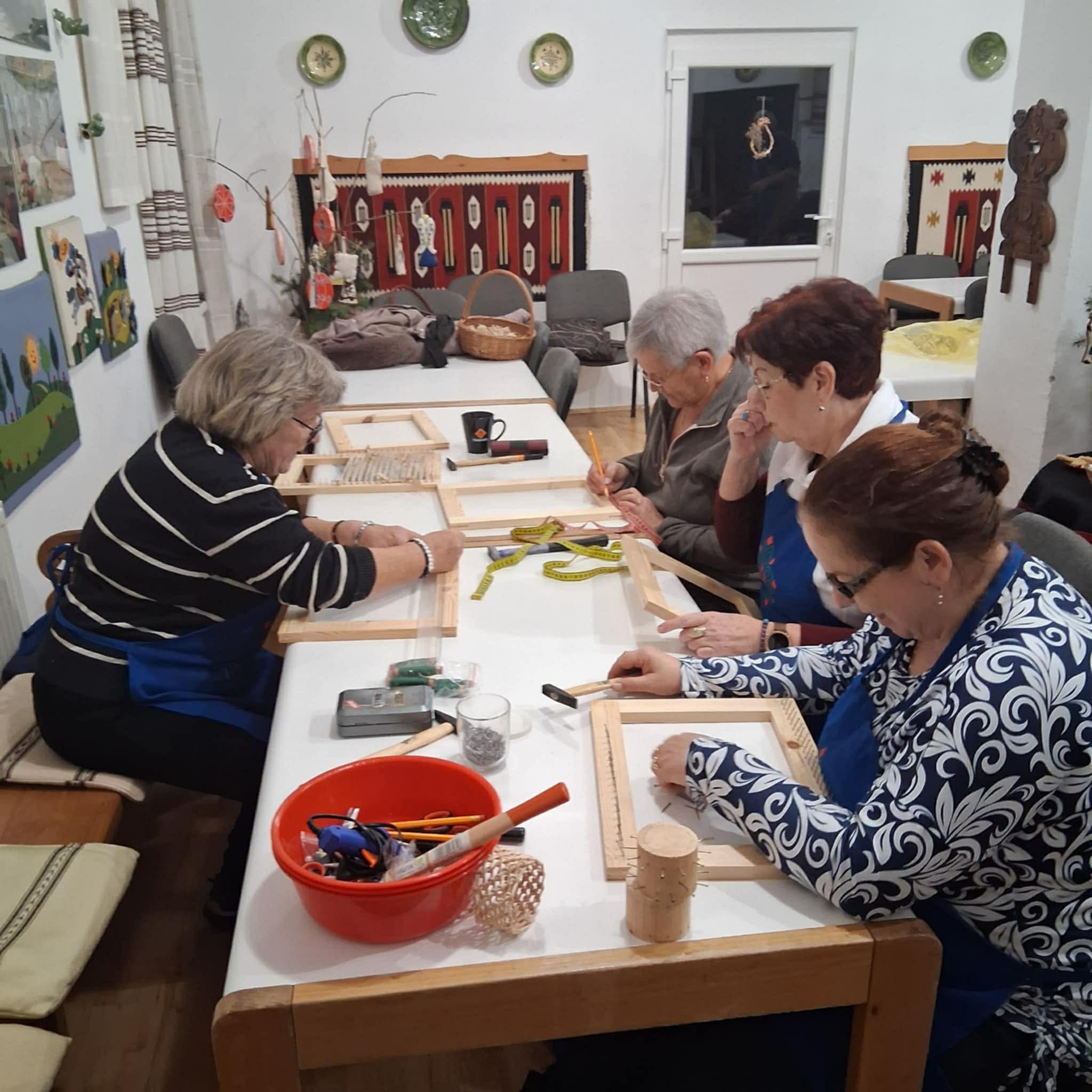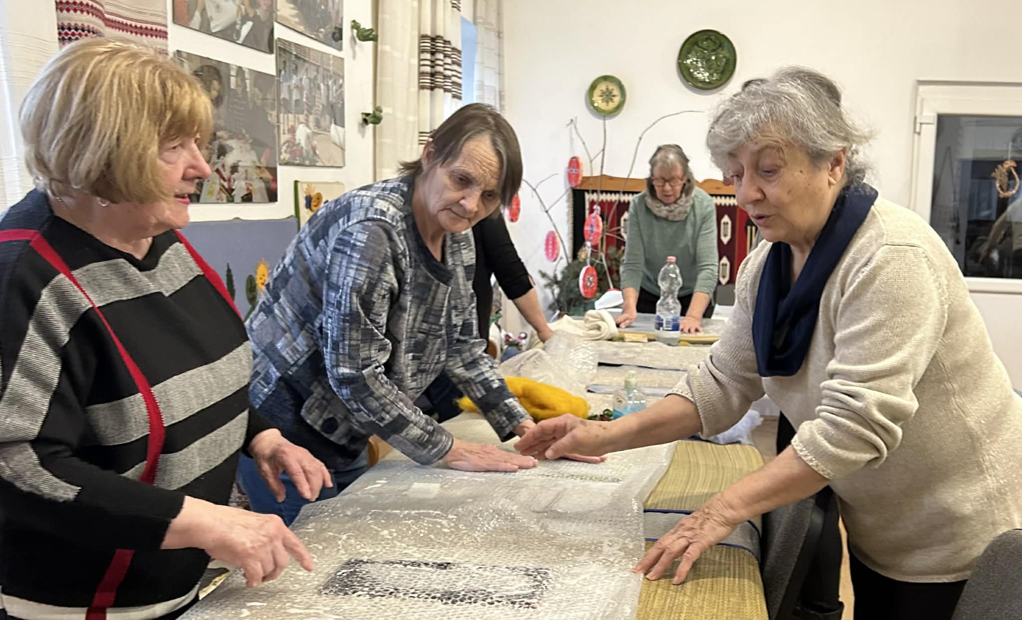 gyermekkel találkoztak, viszont a nyugdíjas klub tagjai jókedvvel készítettek filc és gyékény ajándéktárgyakat.