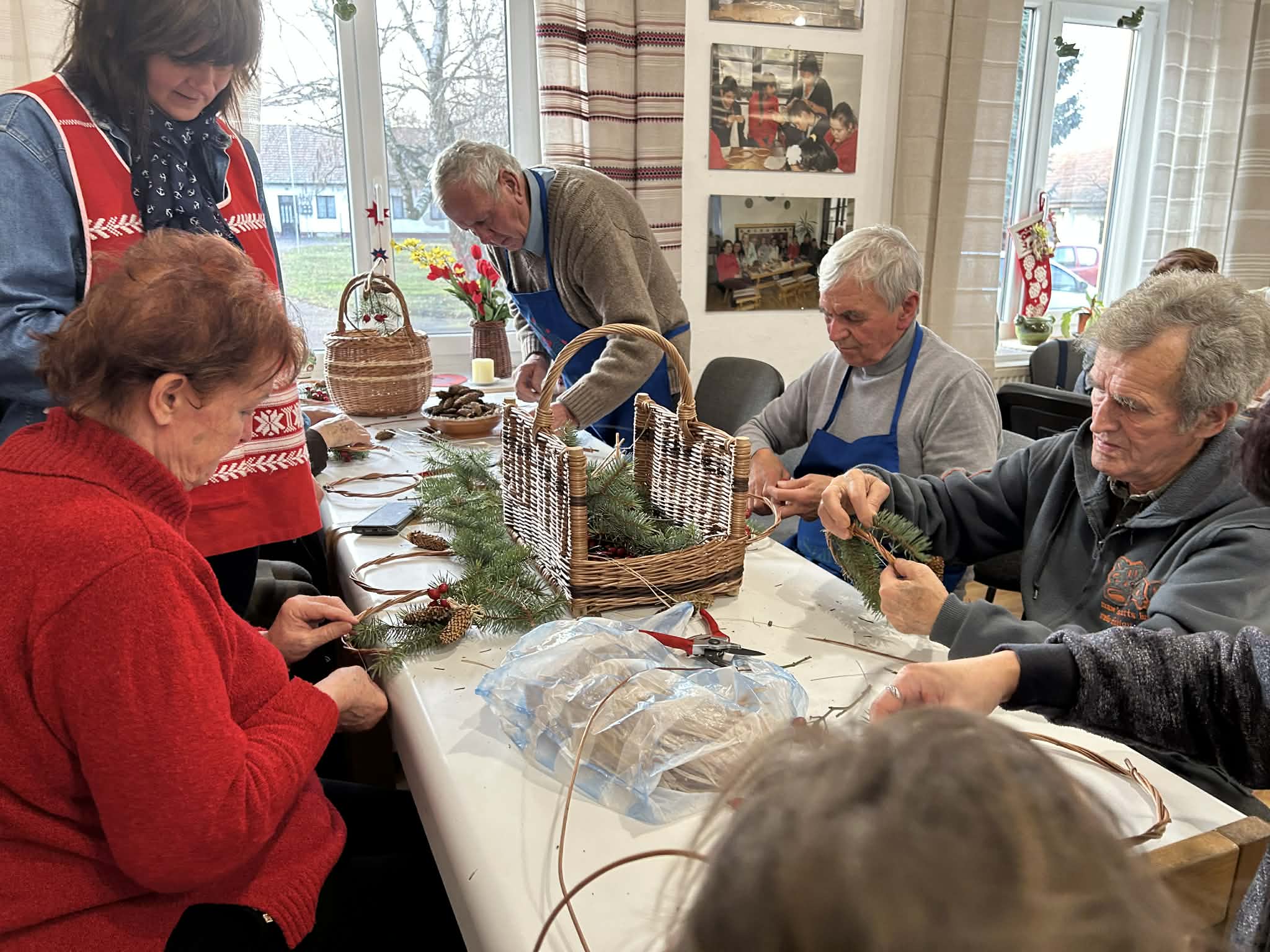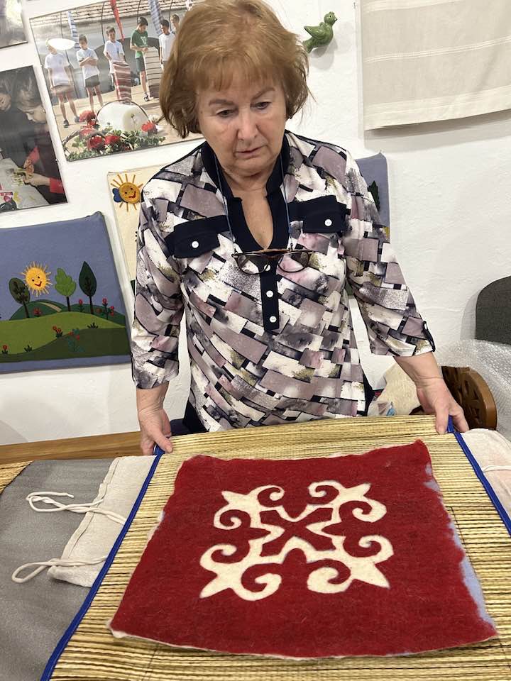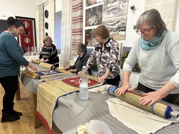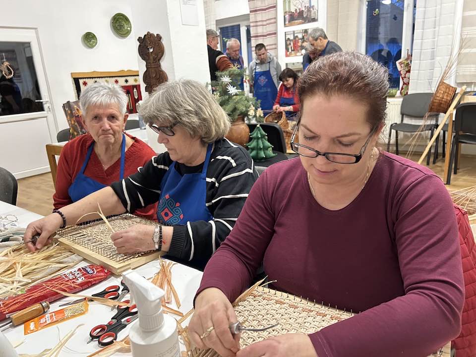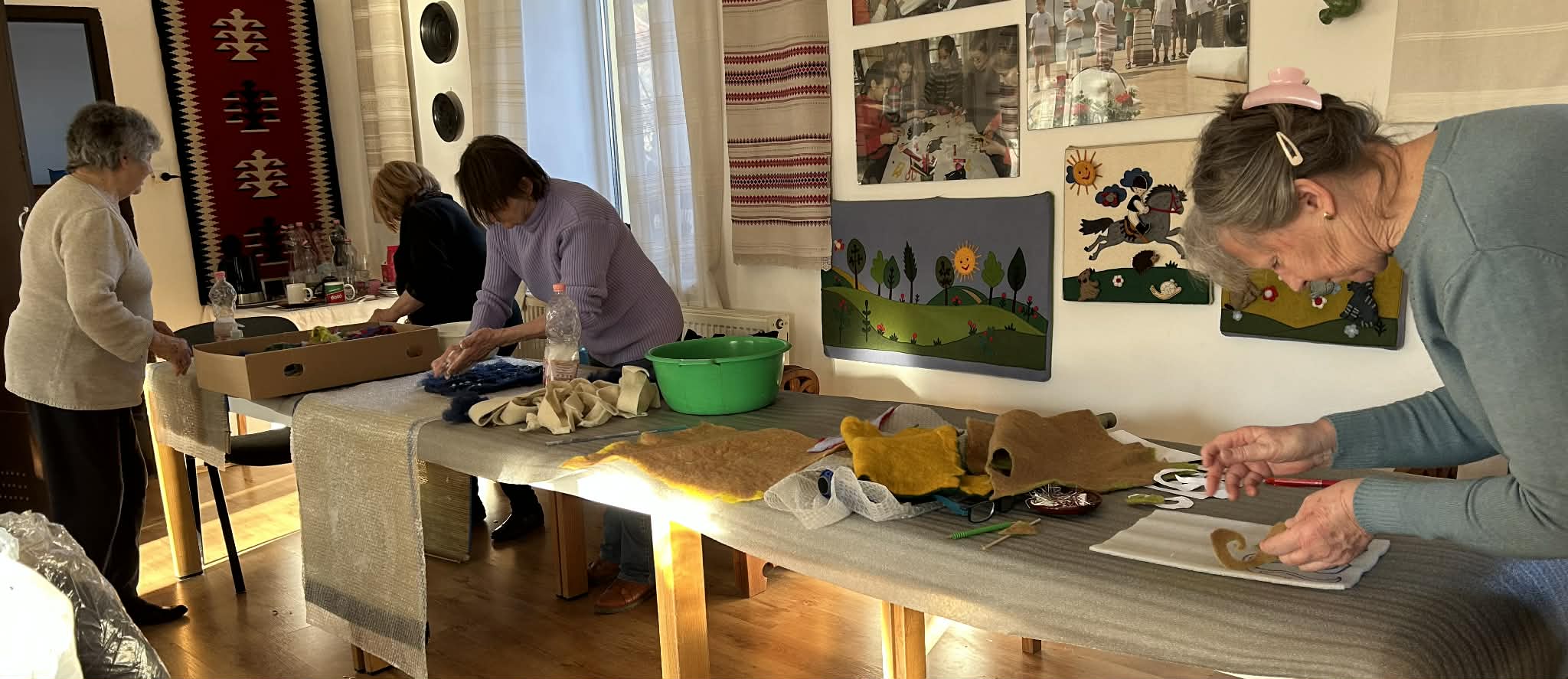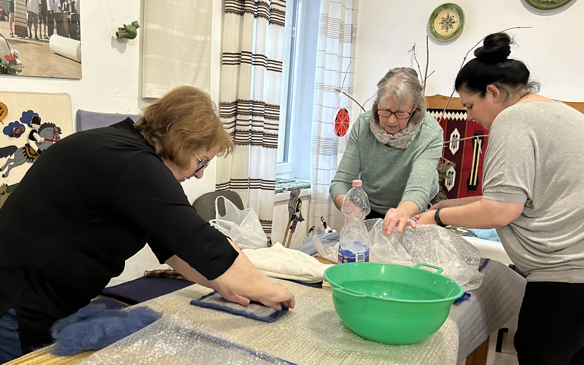 gyermekkel találkoztak, viszont a nyugdíjas klub tagjai jókedvvel készítettek filc és gyékény ajándéktárgyakat.
