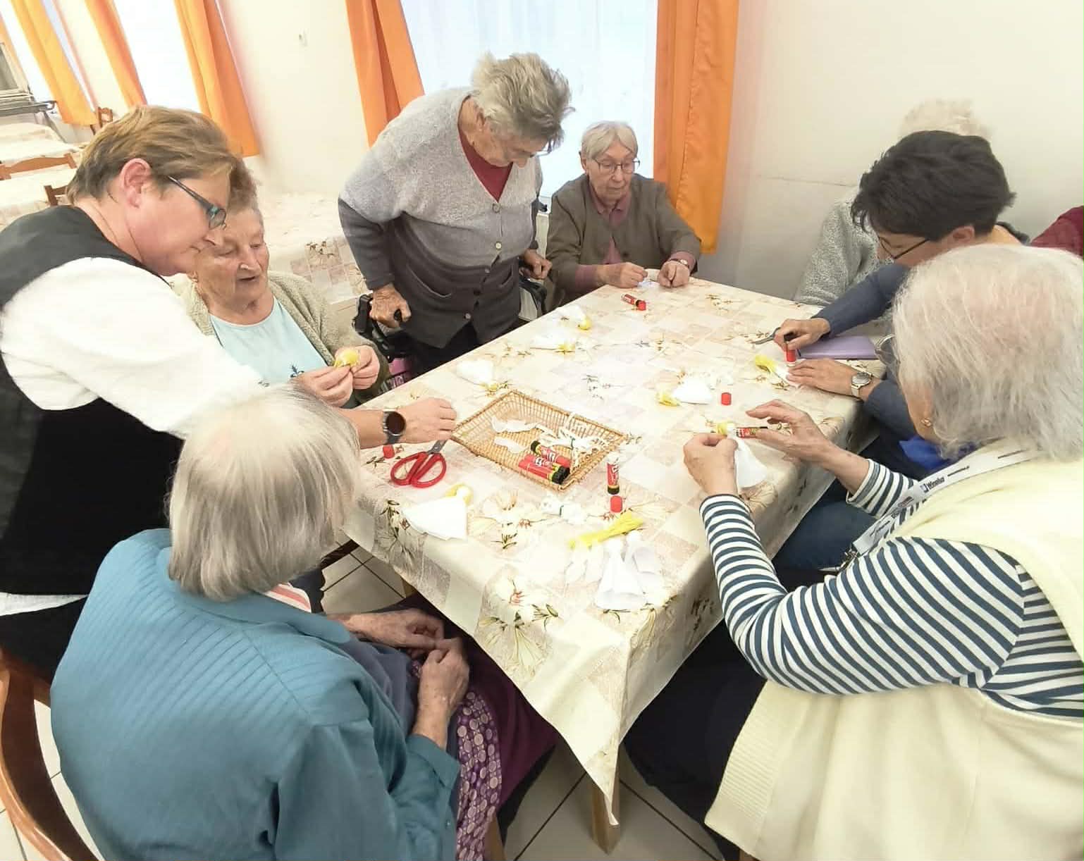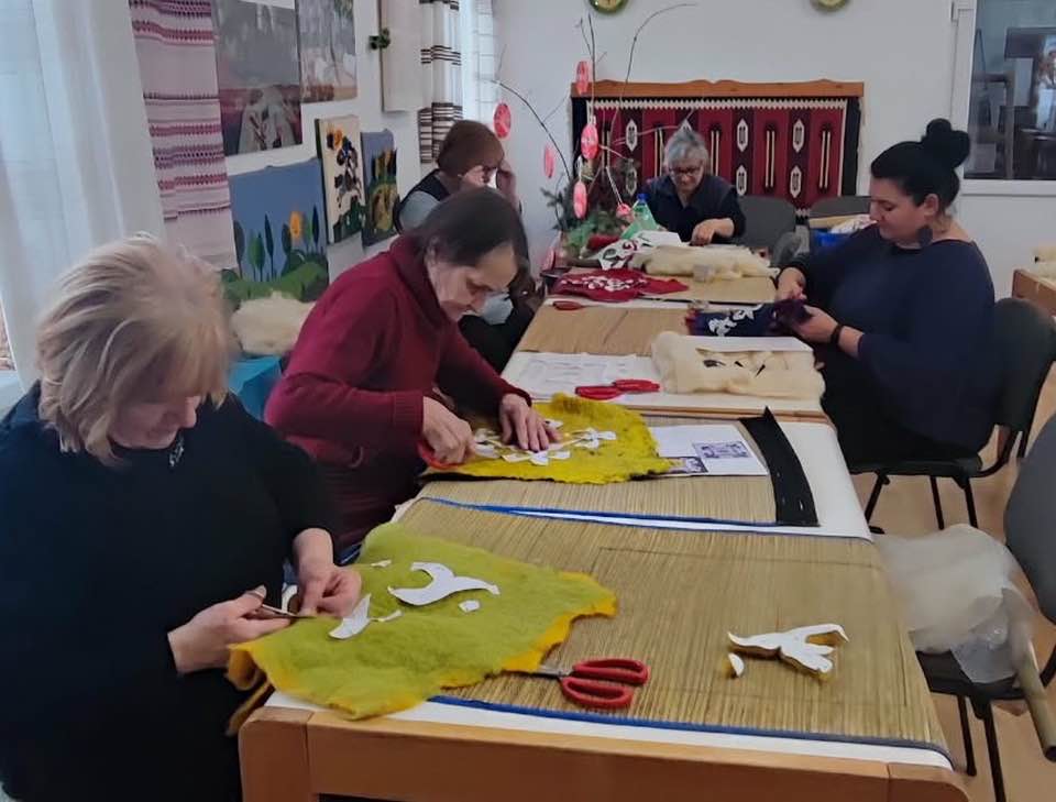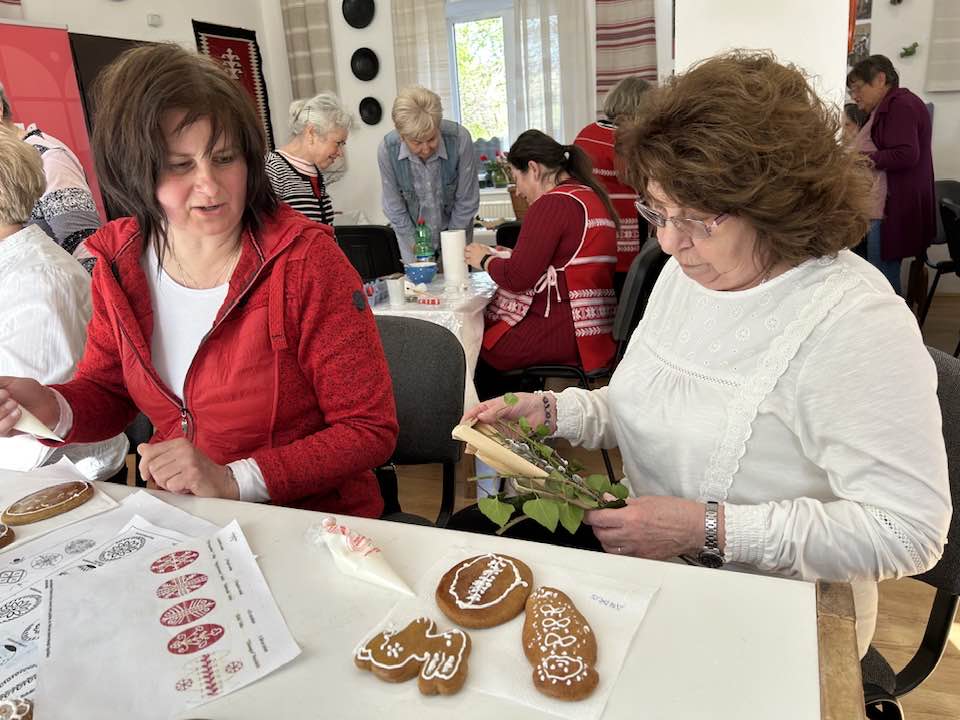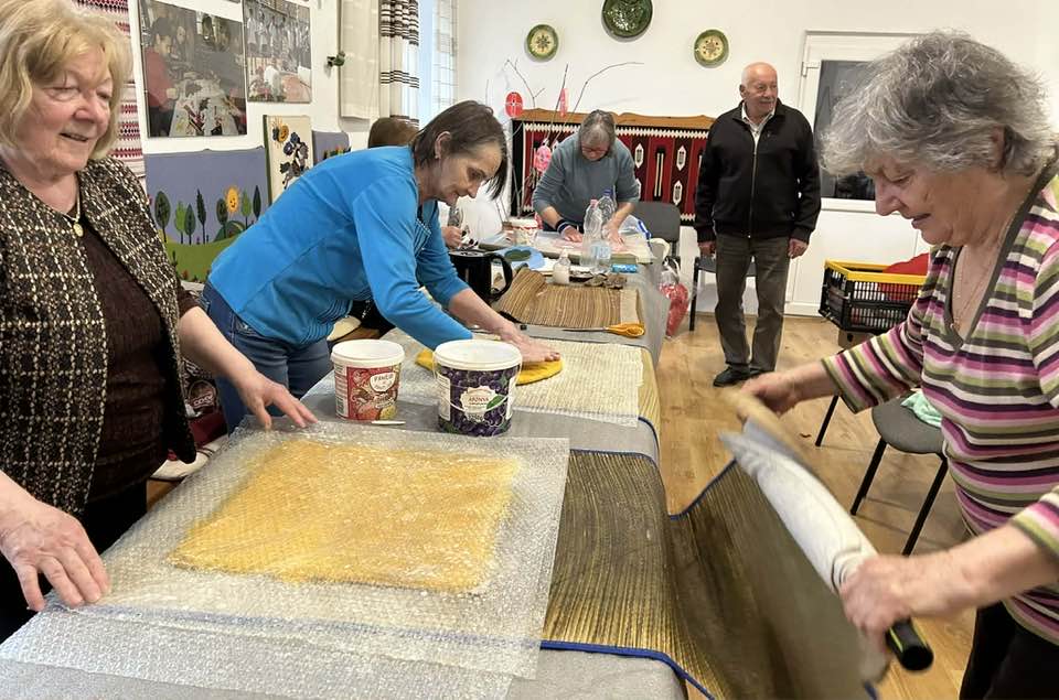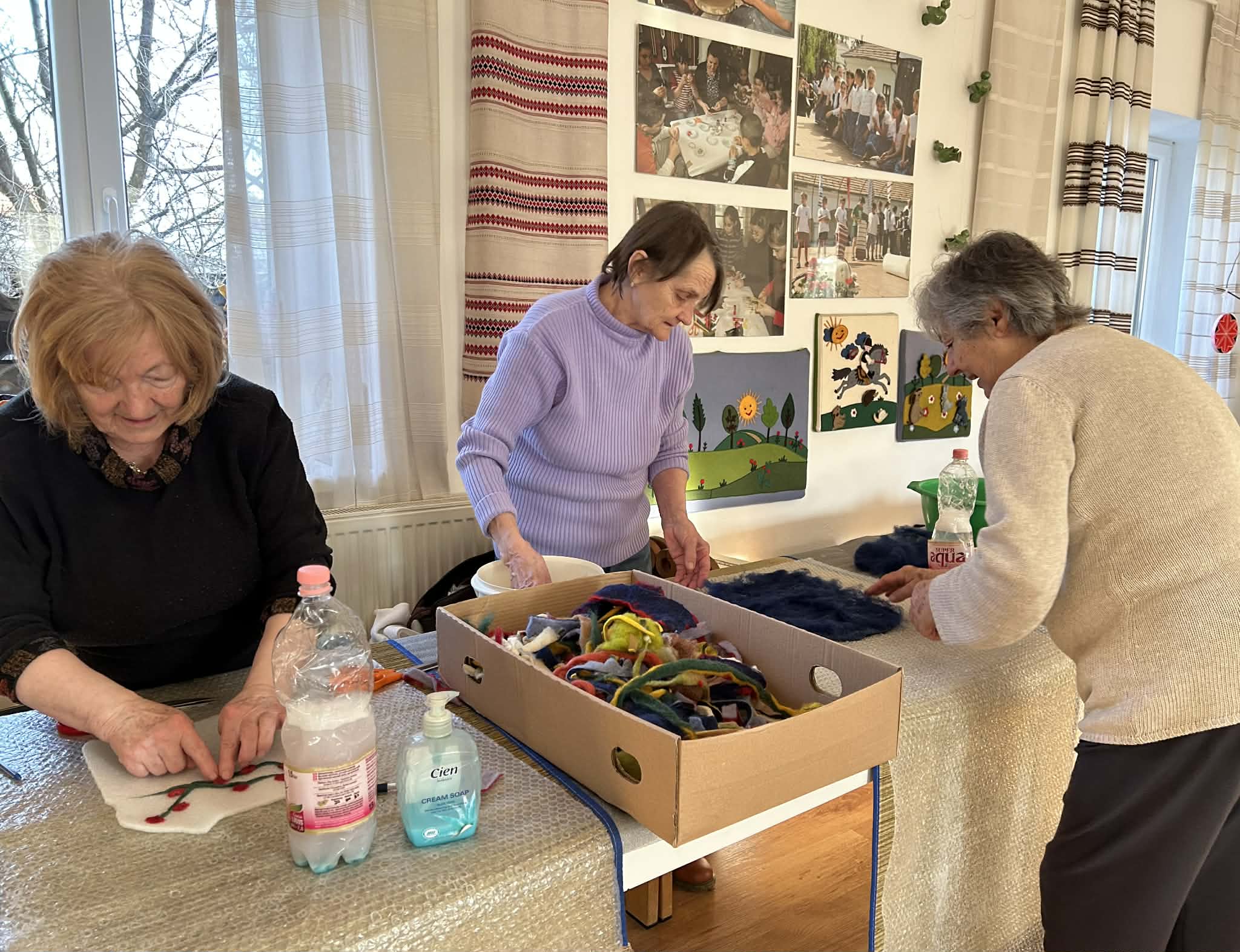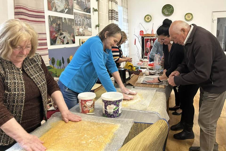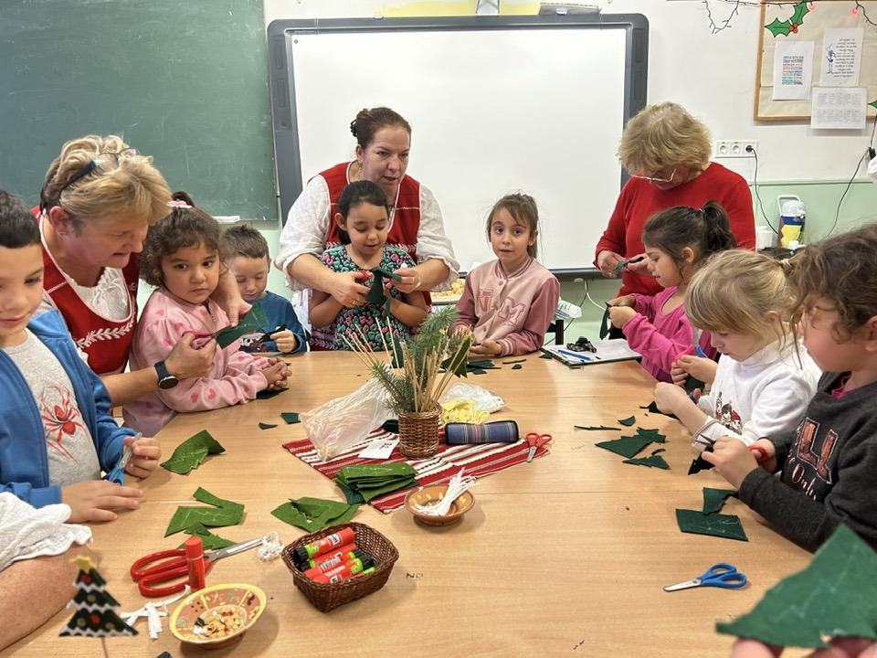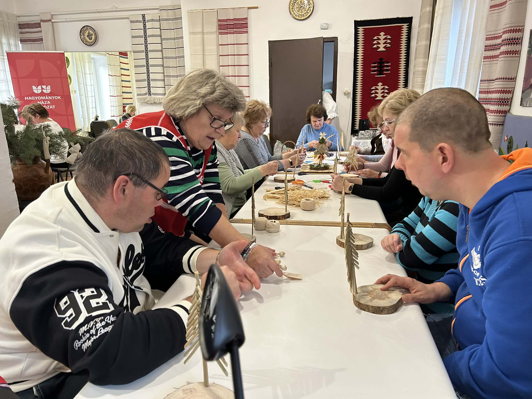gyermekkel találkoztak, viszont a nyugdíjas klub tagjai jókedvvel készítettek filc és gyékény ajándéktárgyakat.