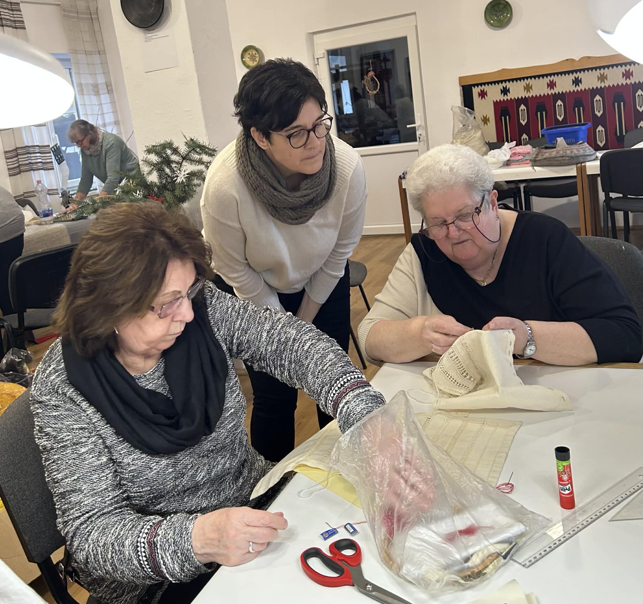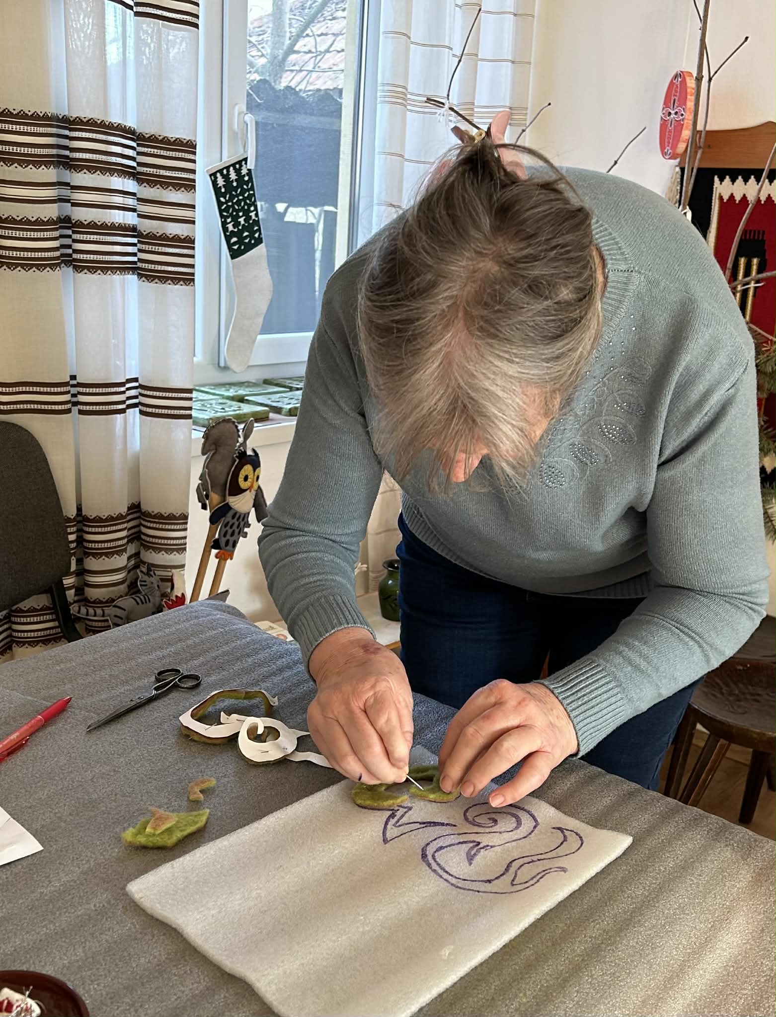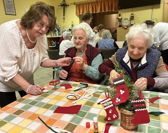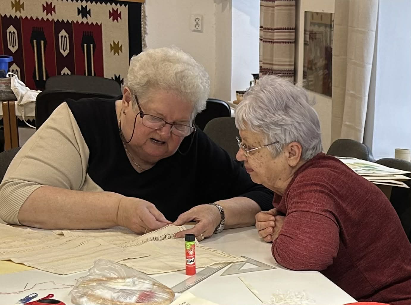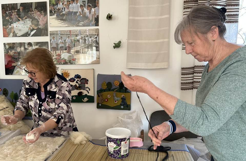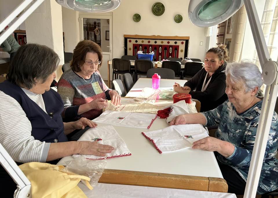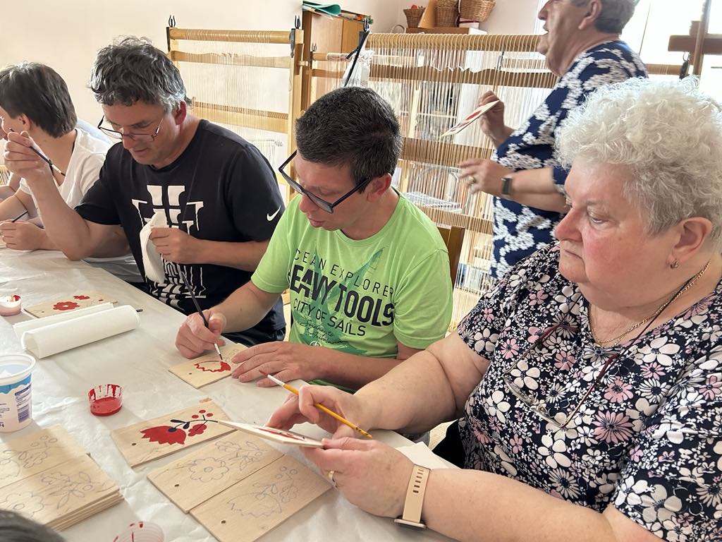 gyermekkel találkoztak, viszont a nyugdíjas klub tagjai jókedvvel készítettek filc és gyékény ajándéktárgyakat.
