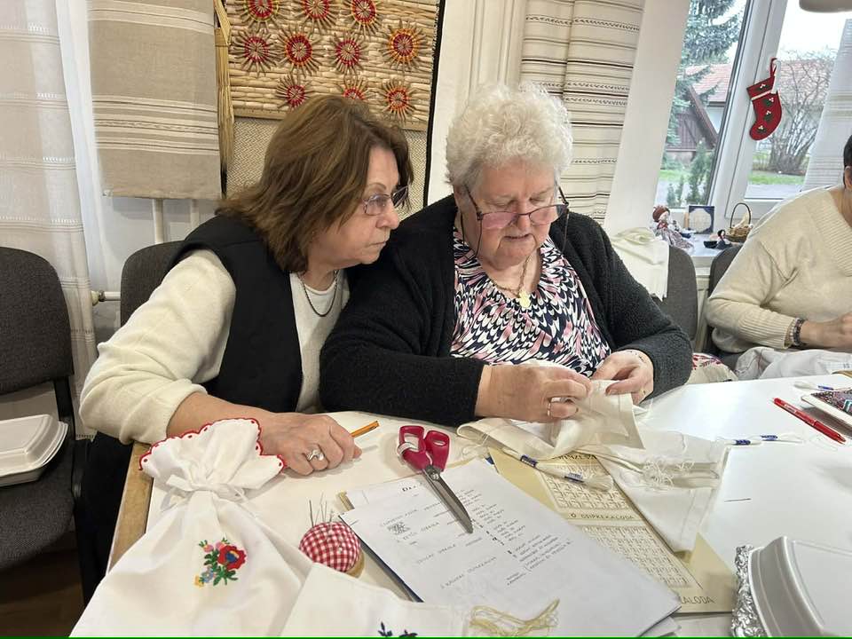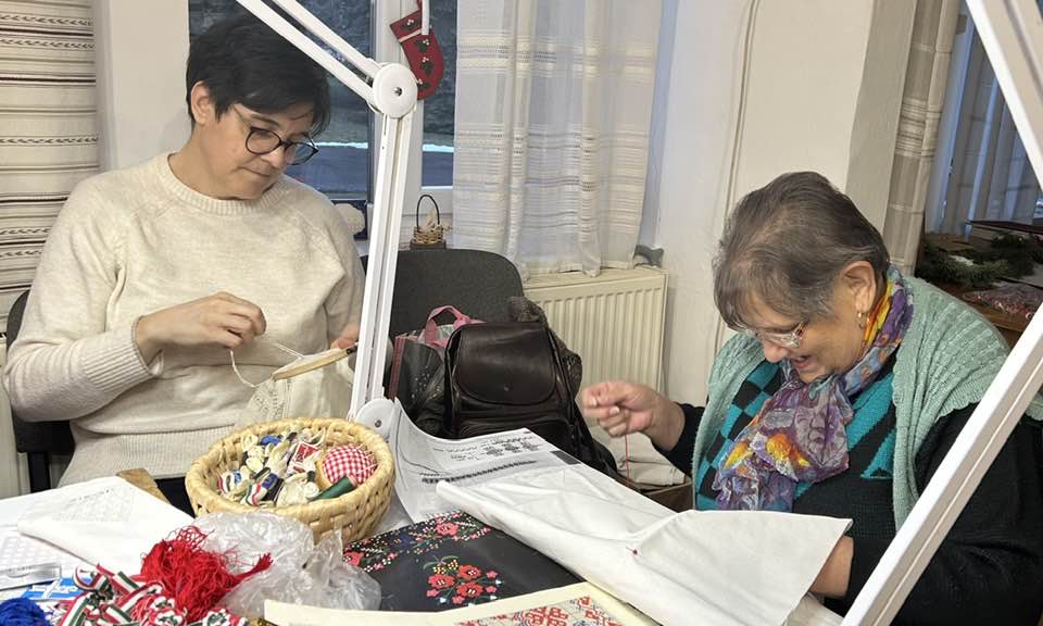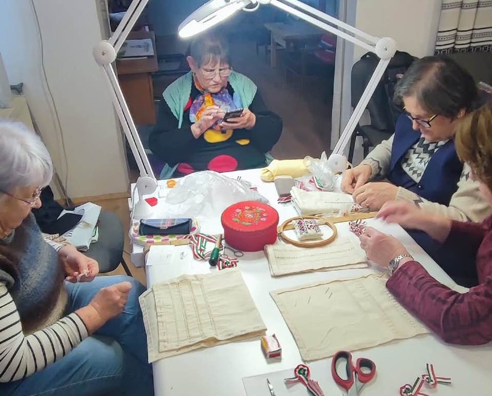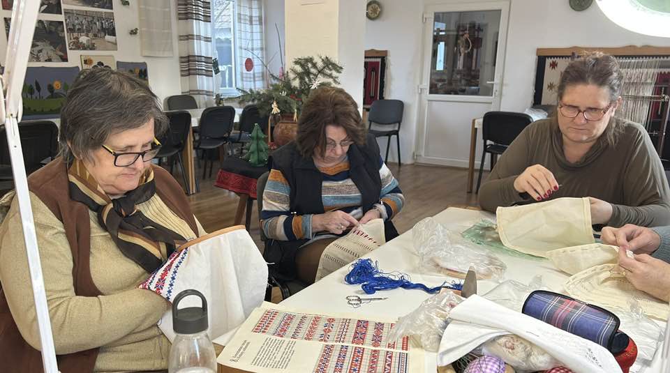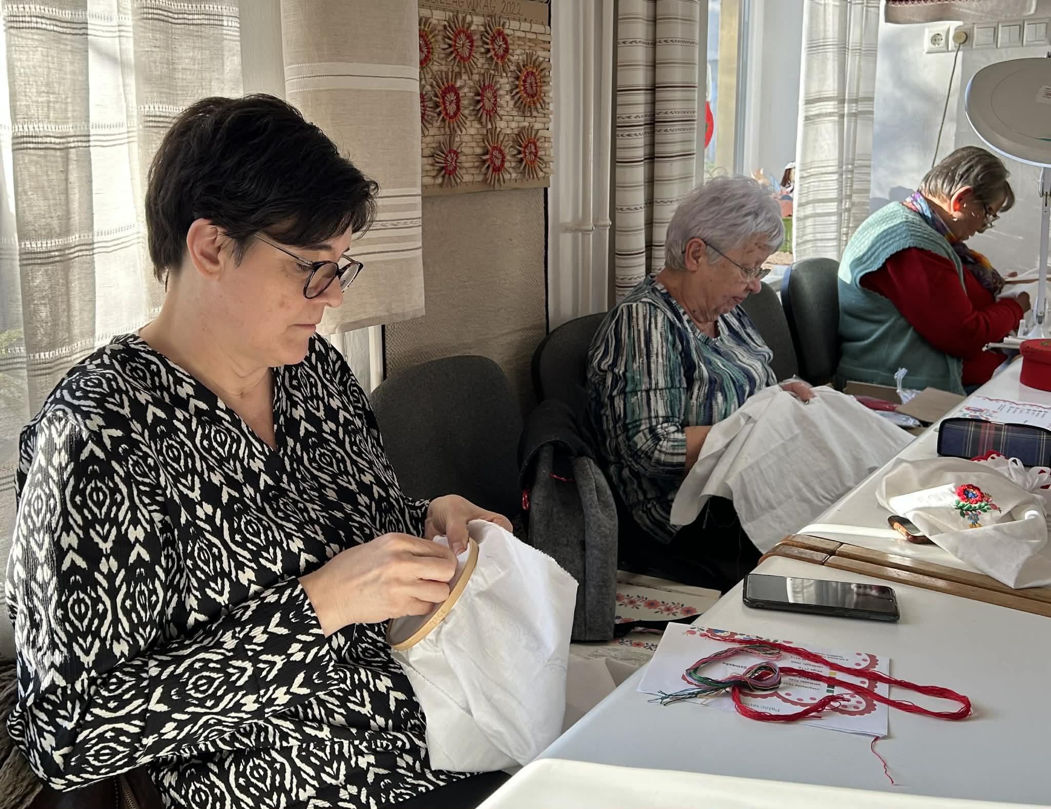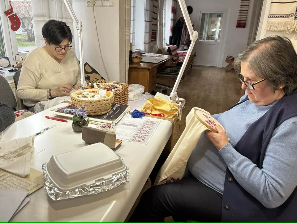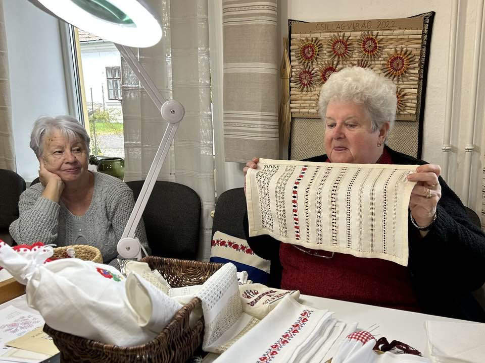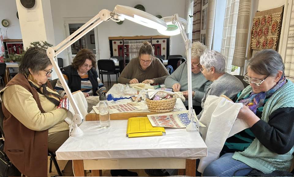 Palóc hímzés Bessenyei Jánosné népi iparművész vezetésével a Csillagvirág alkotóházában.