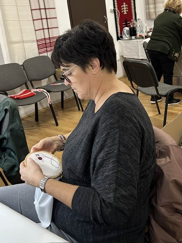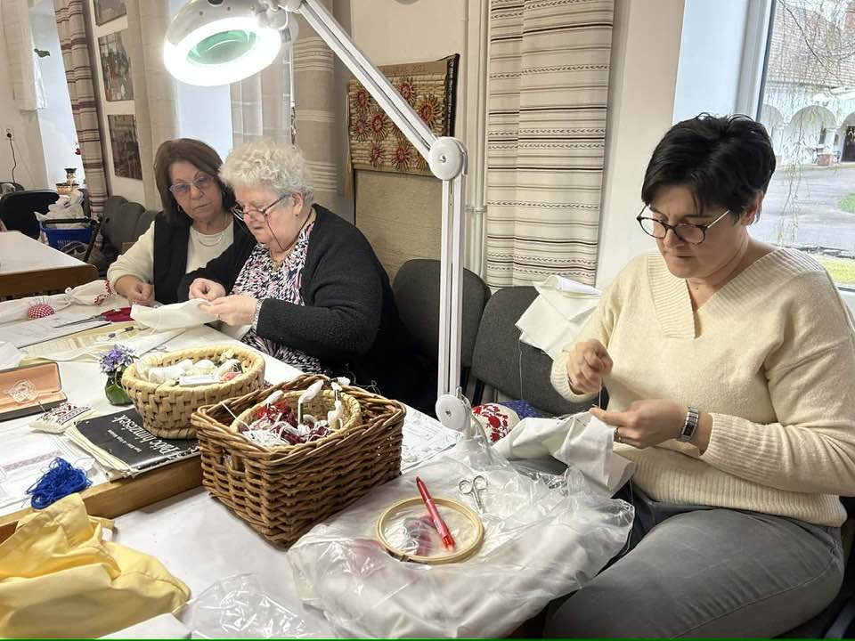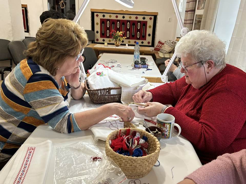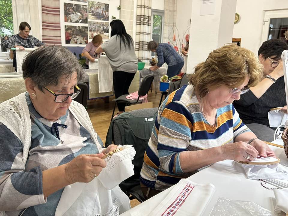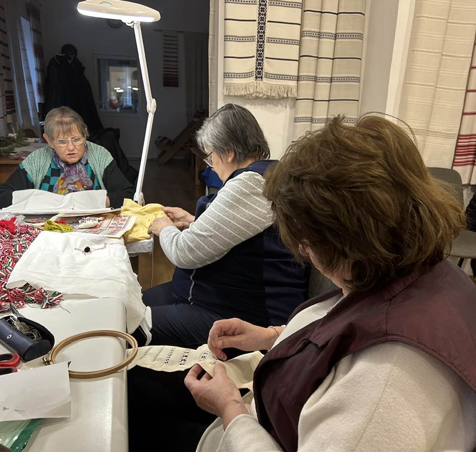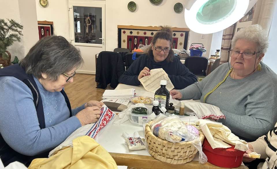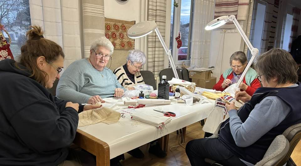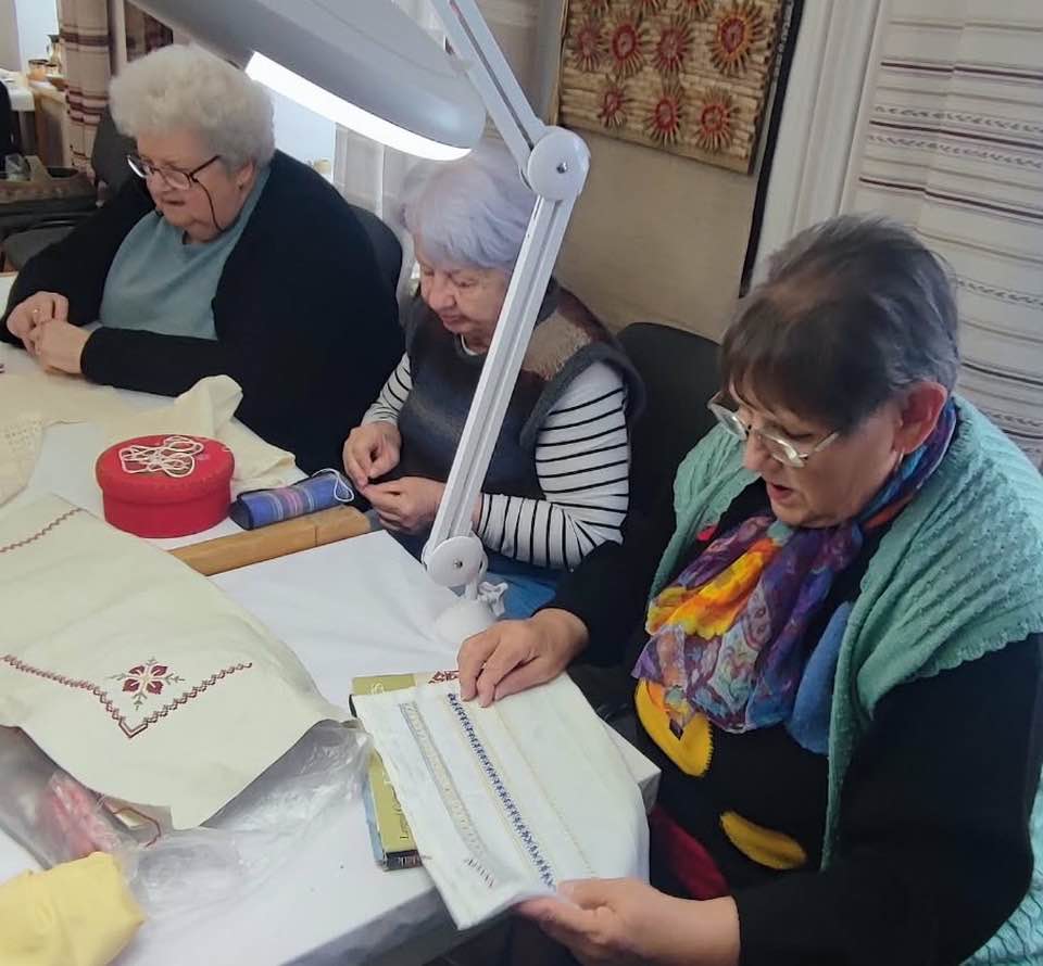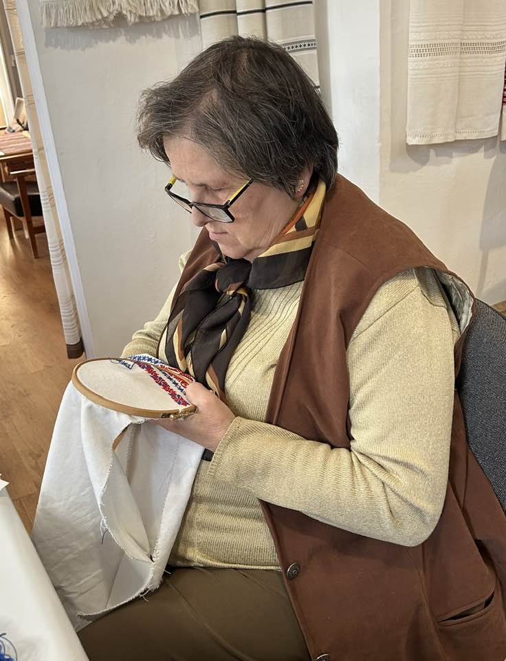 Palóc hímzés Bessenyei Jánosné népi iparművész vezetésével a Csillagvirág alkotóházában.