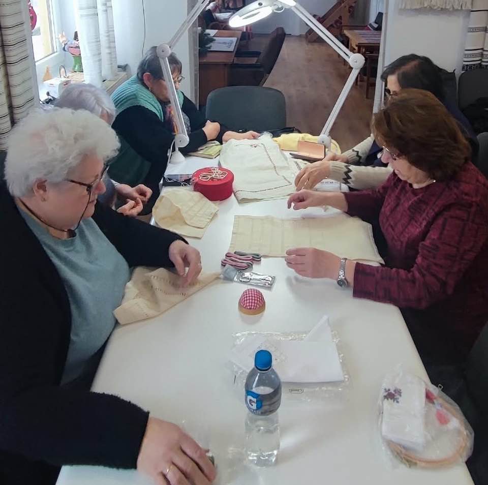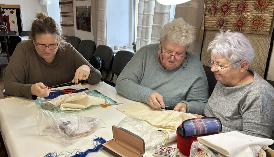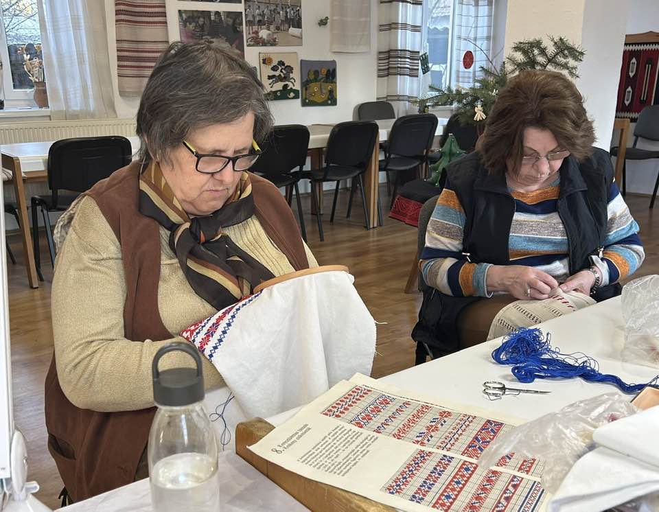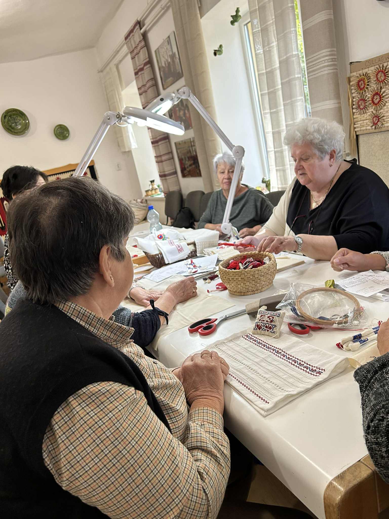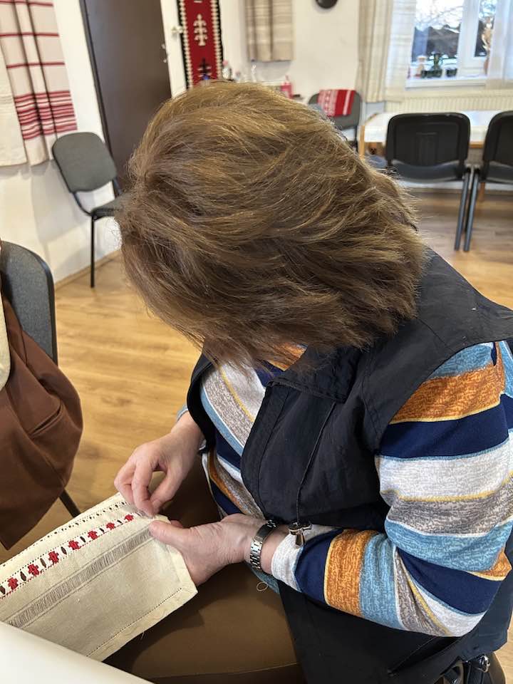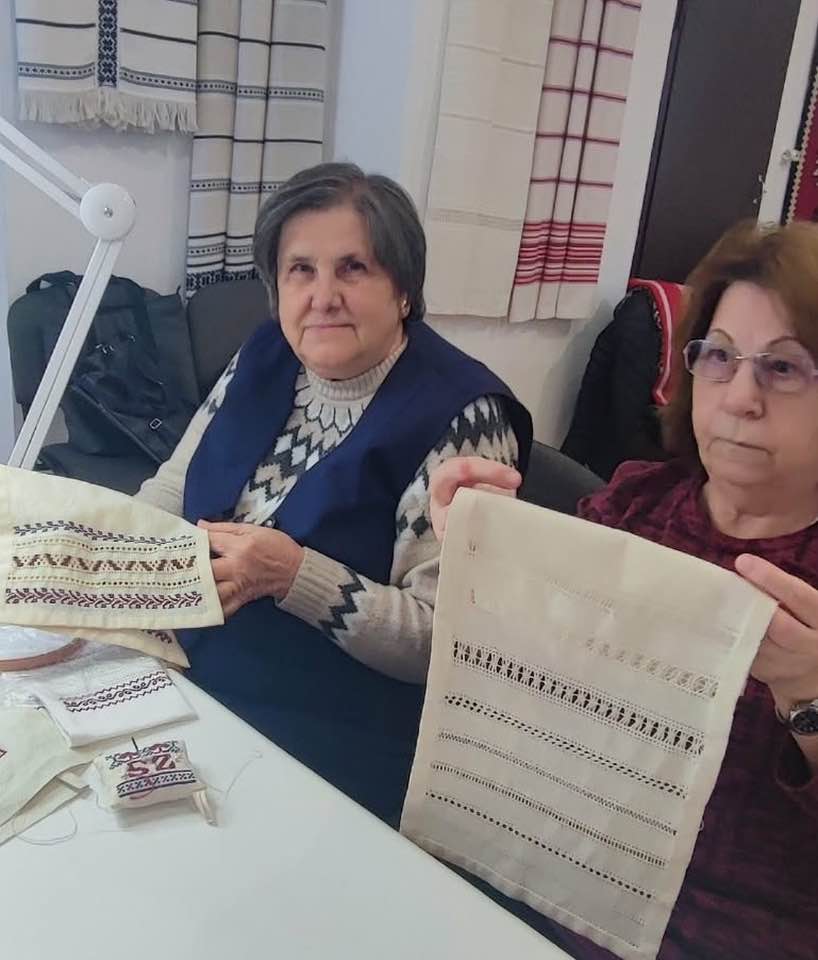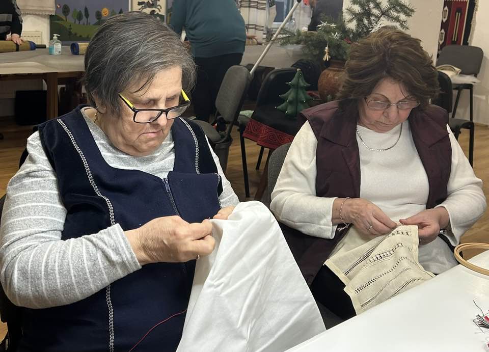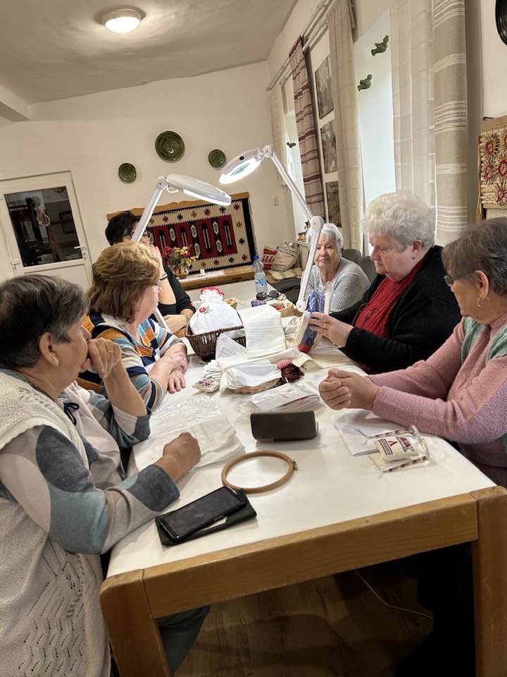 Palóc hímzés Bessenyei Jánosné népi iparművész vezetésével a Csillagvirág alkotóházában.