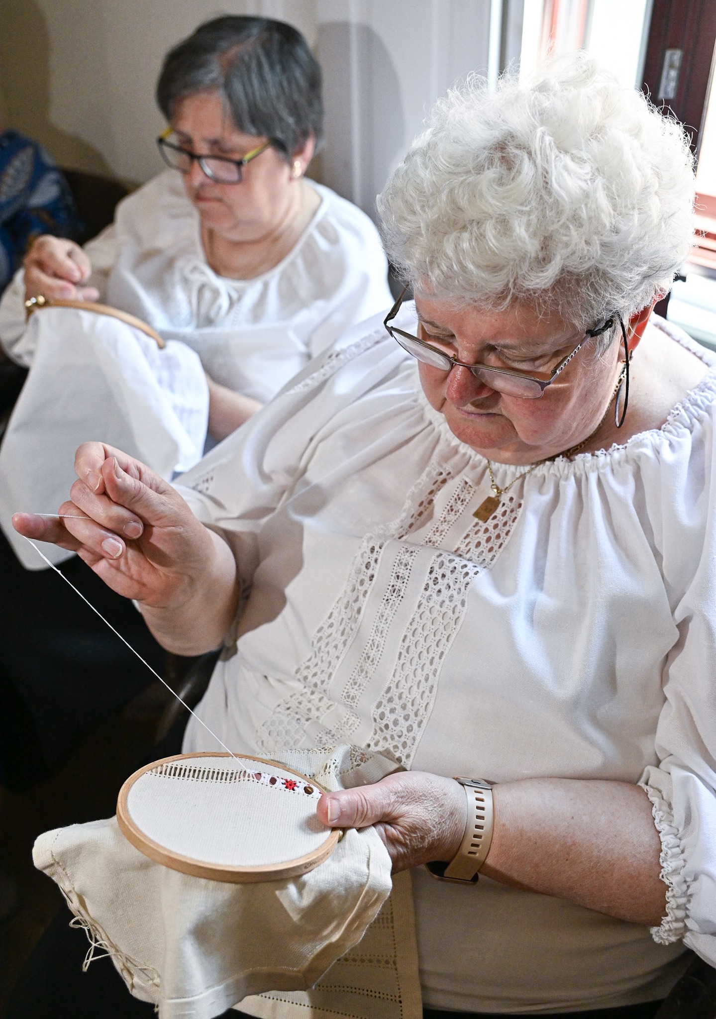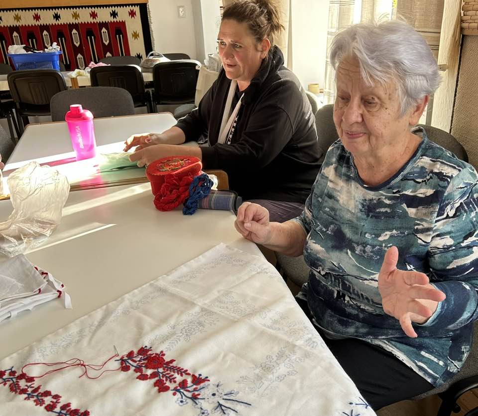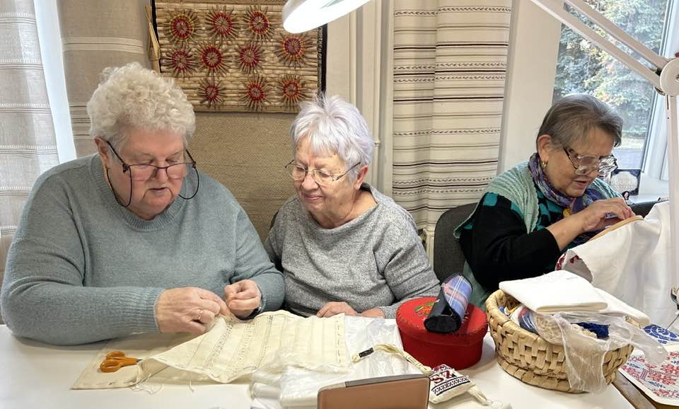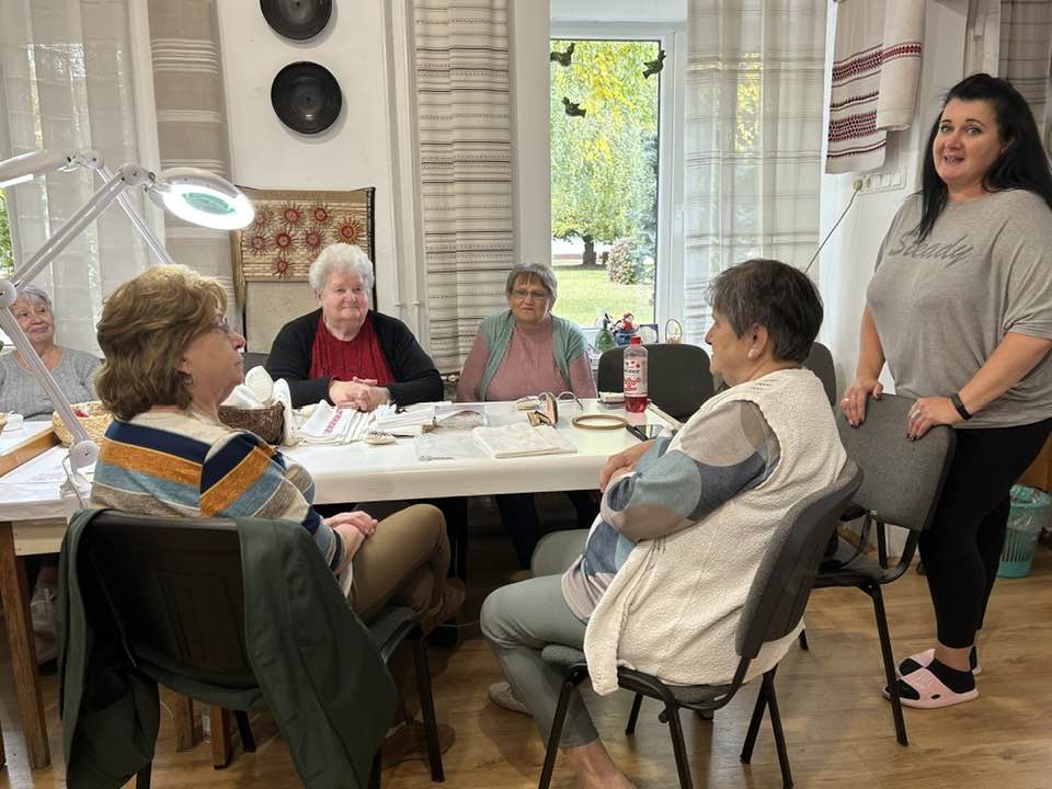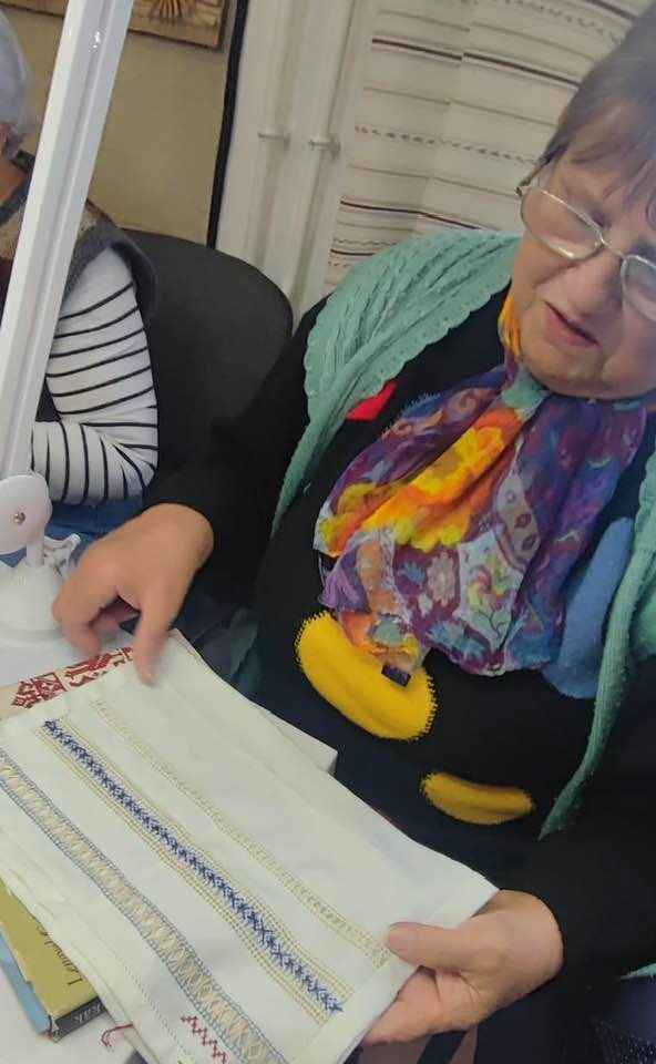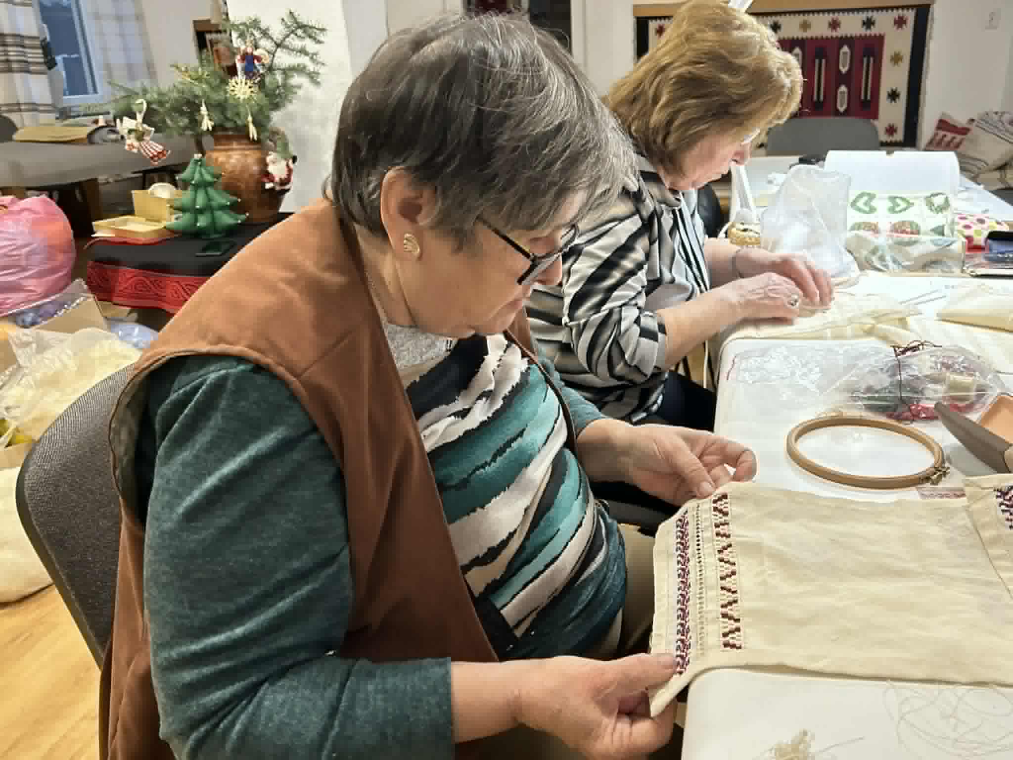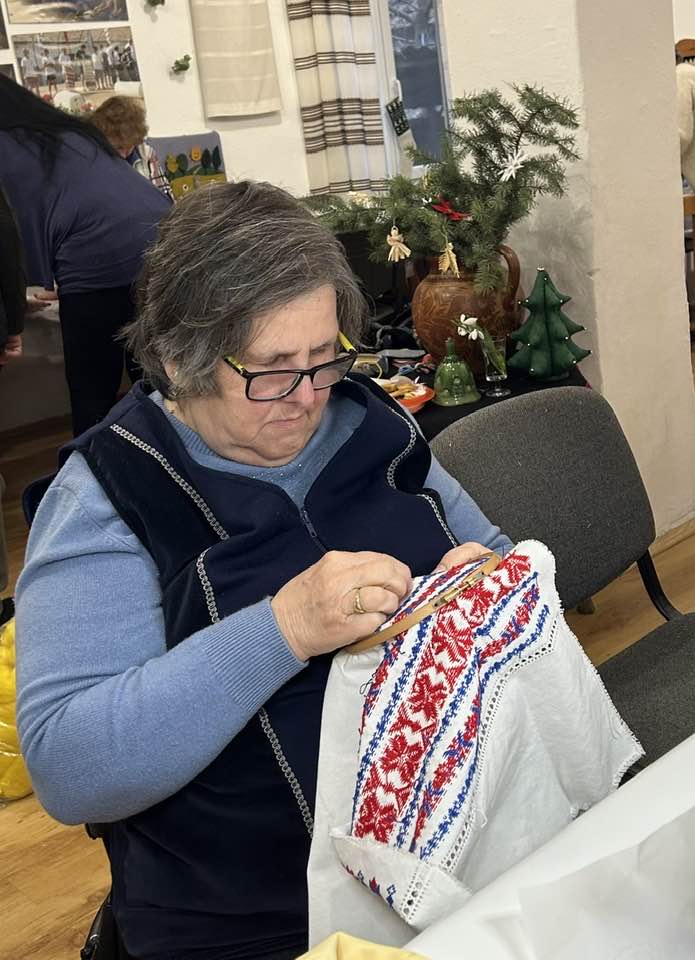 Palóc hímzés Bessenyei Jánosné népi iparművész vezetésével a Csillagvirág alkotóházában.