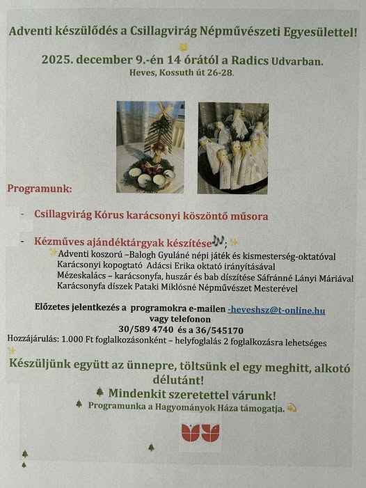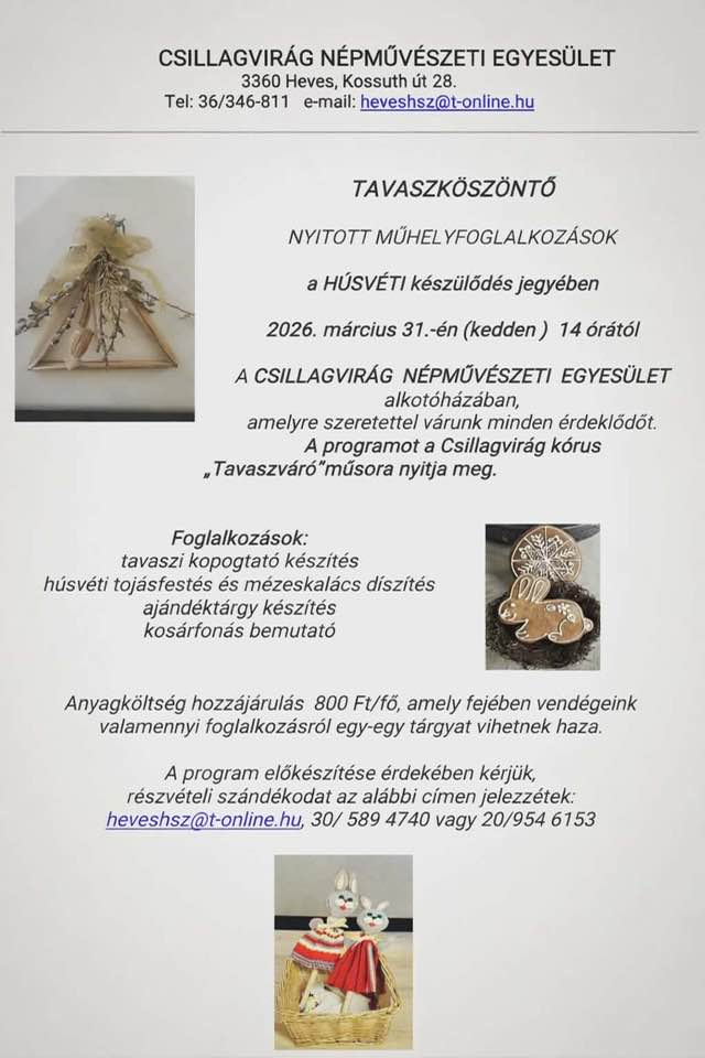 Szervező: a Csillagvirág Népművészeti Egyesület