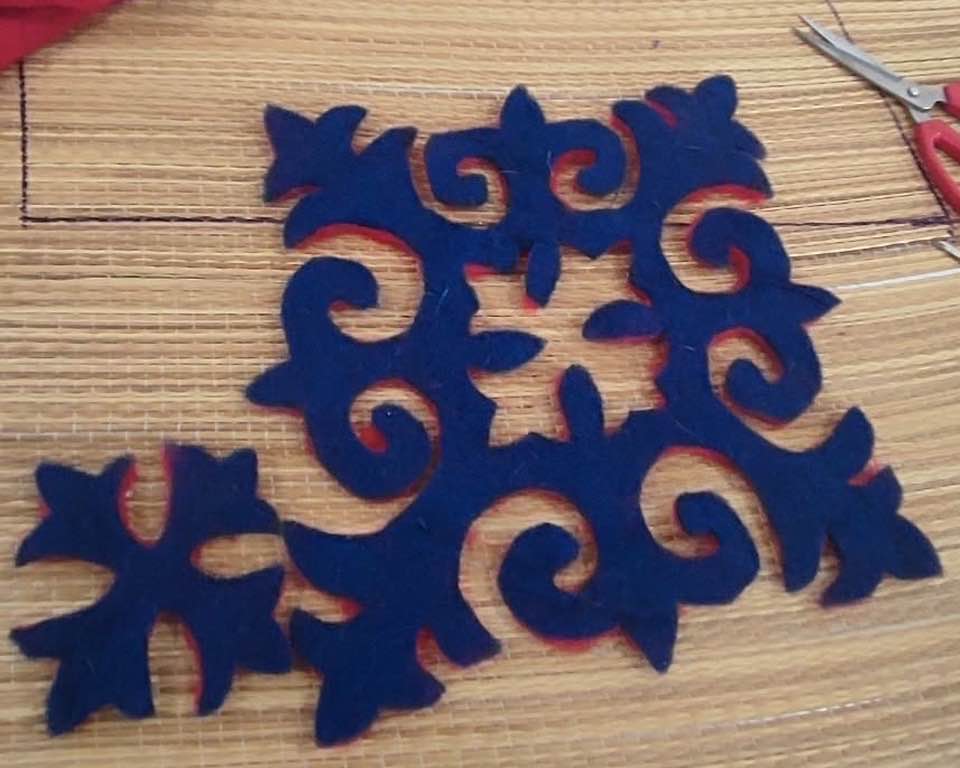 Alkotnak a Lányok. A nemez kistáskákra finom nemez díszítések kerülnek. Dávidné Erzsike oktató, szakkörvezető örömmel segíti a lányok munkáját.