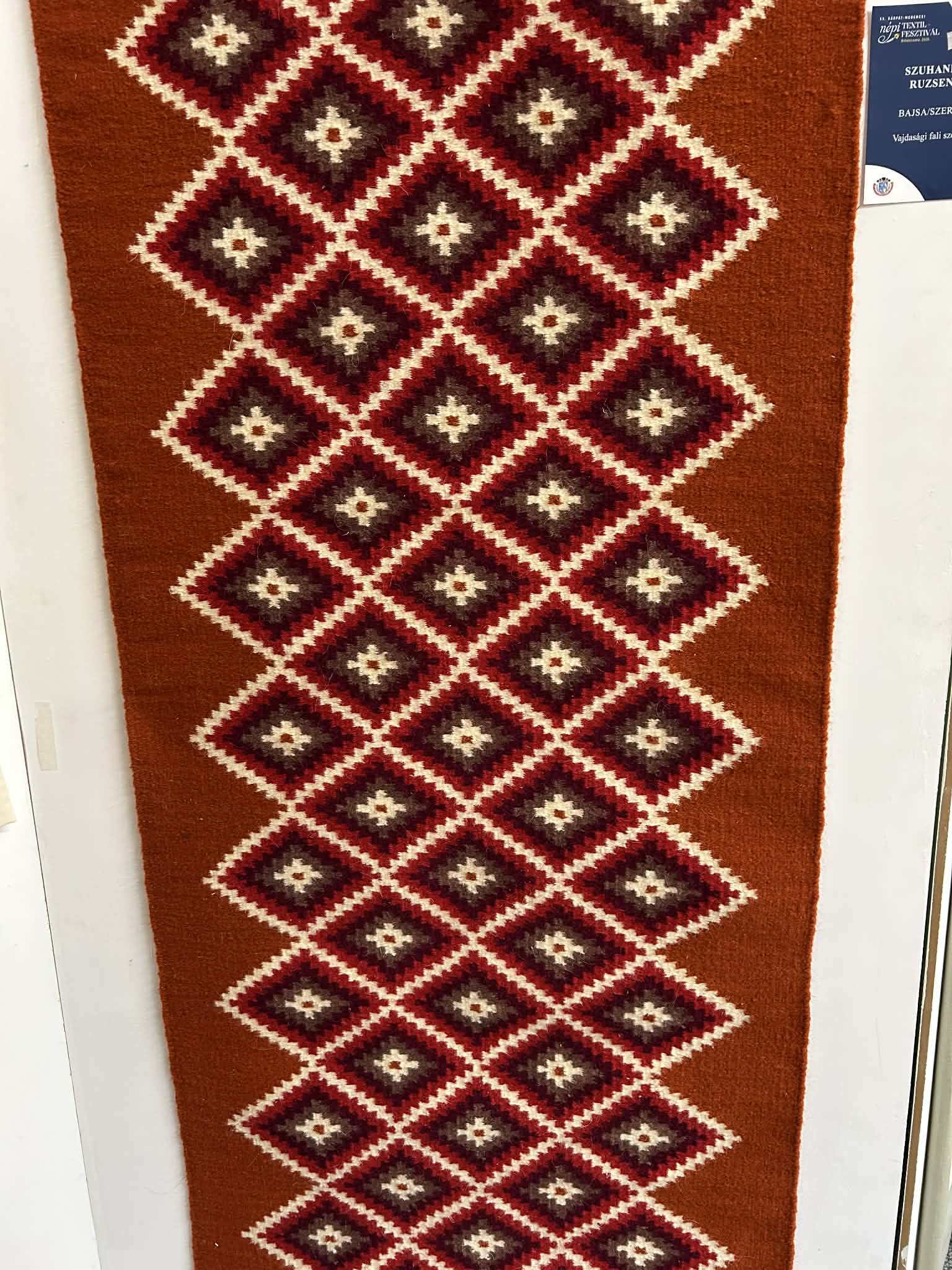 A kiállításon a látogatók megismerhették Szuhankó Ruzsena bajsai egyesületi tagunk gyapjú szőnyegét is.